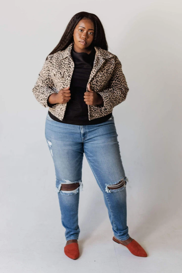 - Color:Â Leopard Print Denim